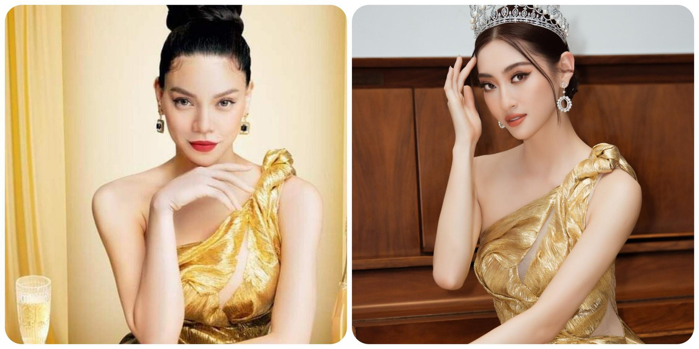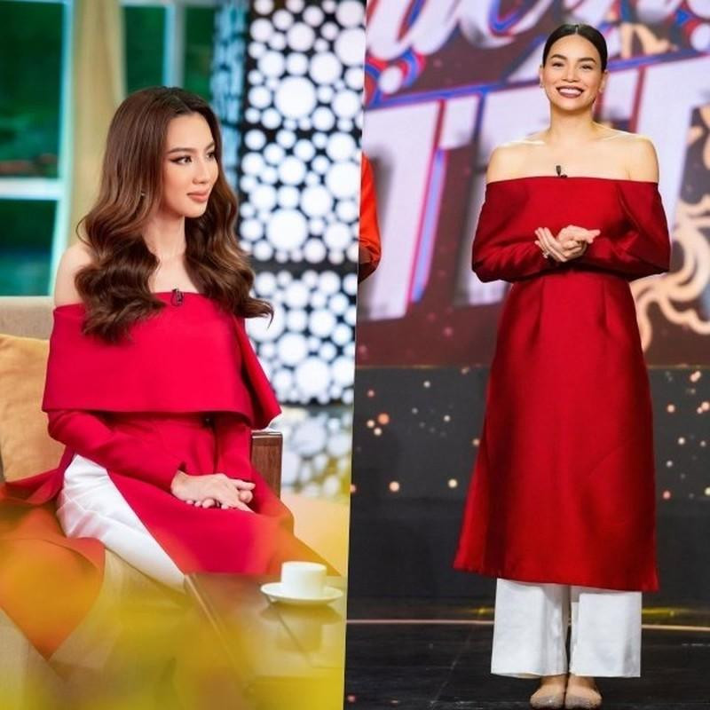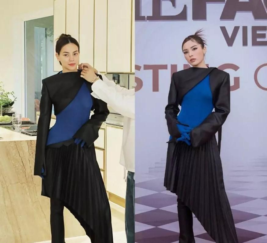 Trong một lần khác, bà mẹ 3 con "đọ sắc" trong cùng một thiết kế với Hoa hậu Thùy Tiên.