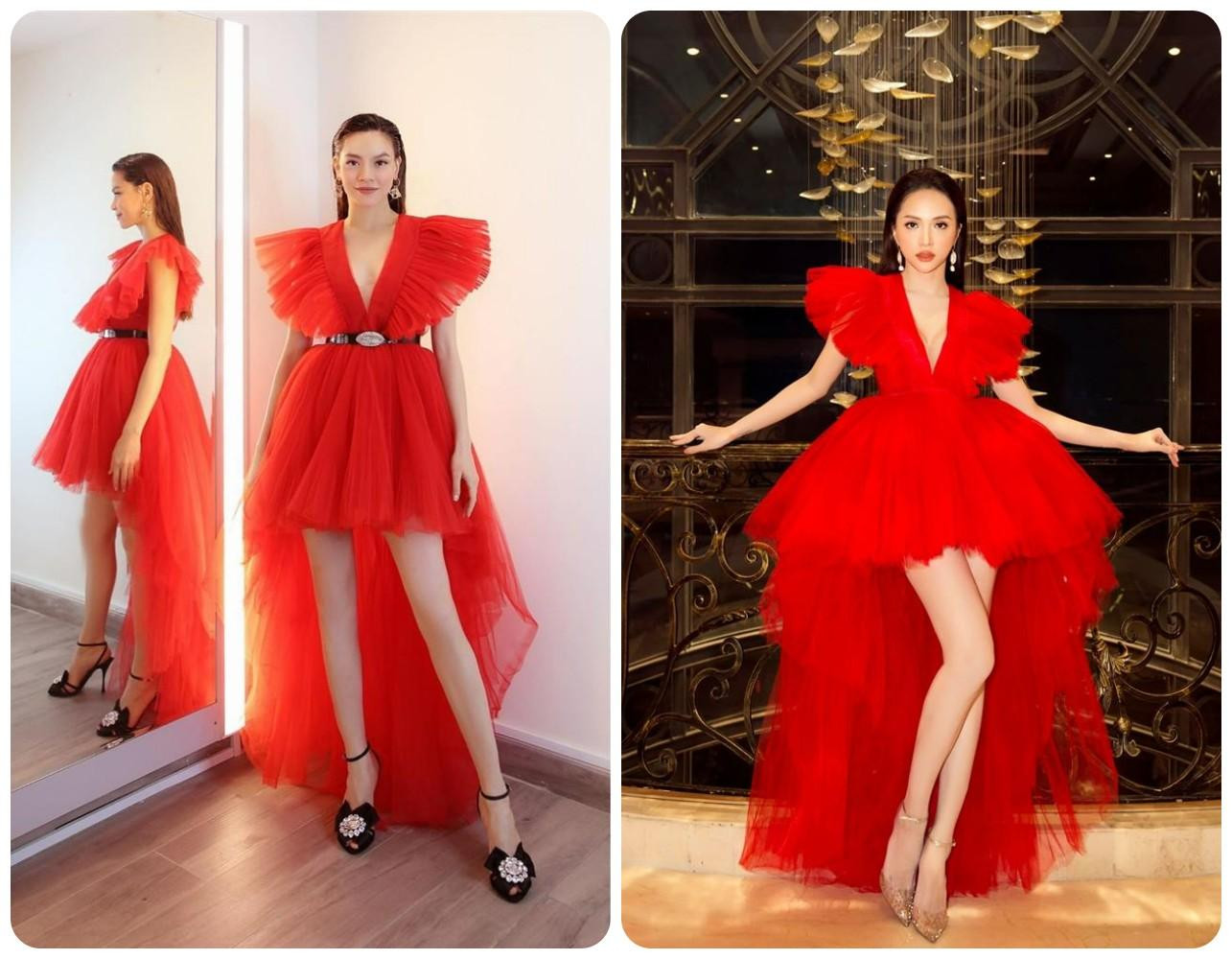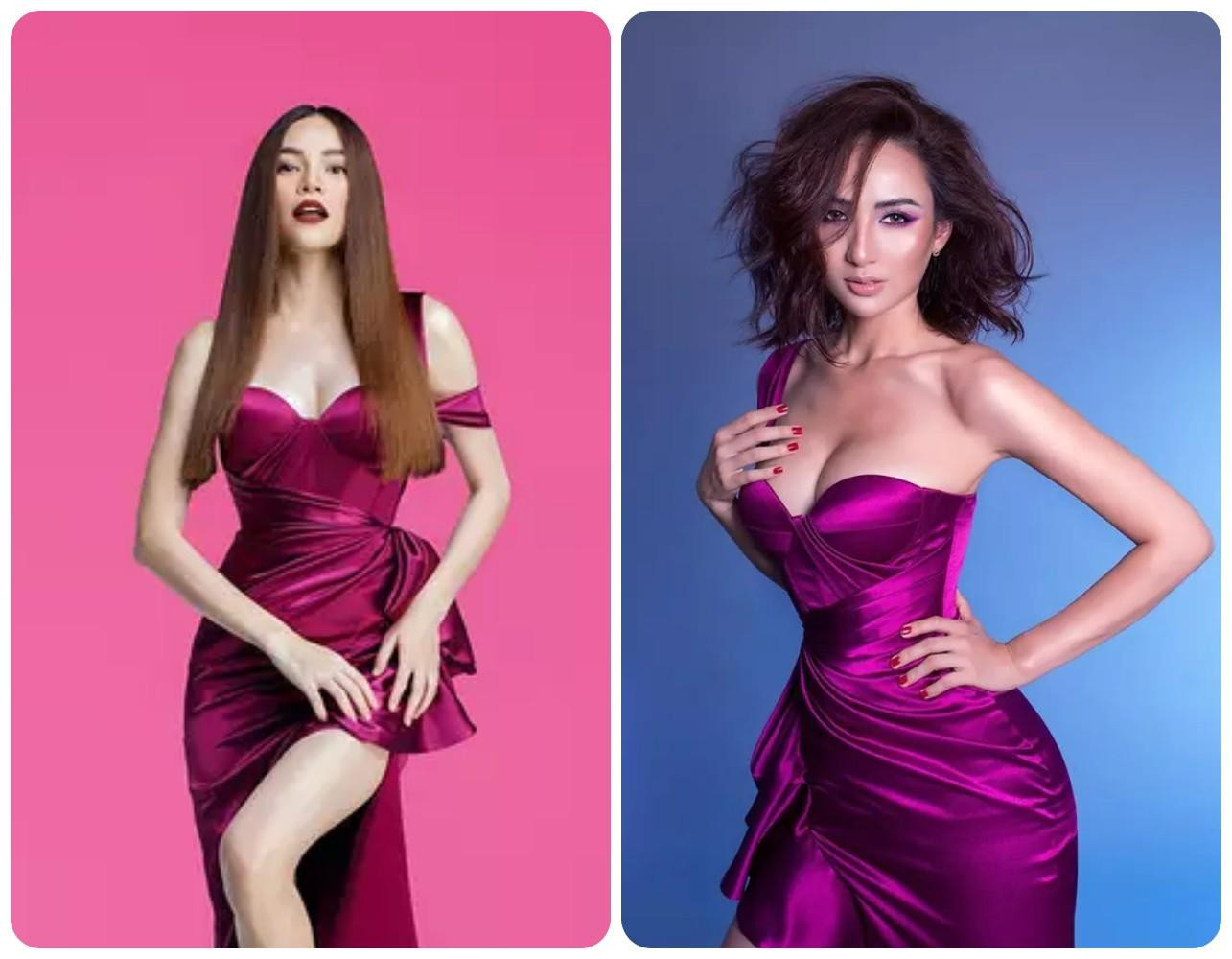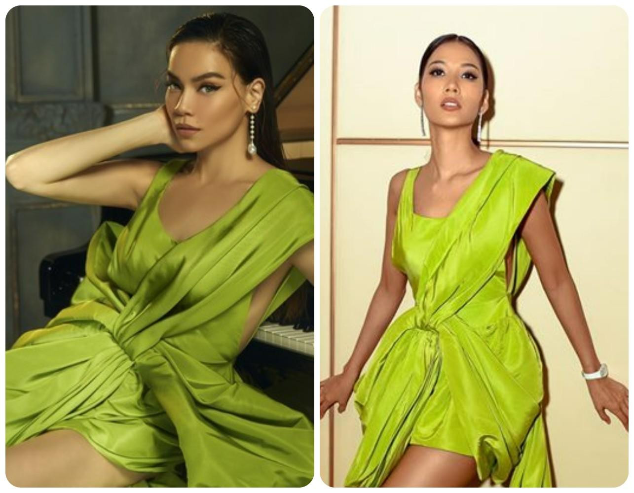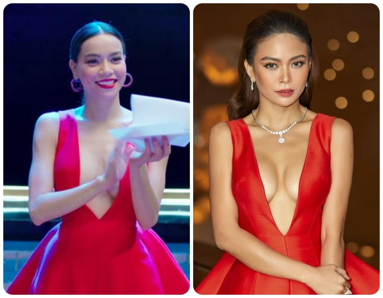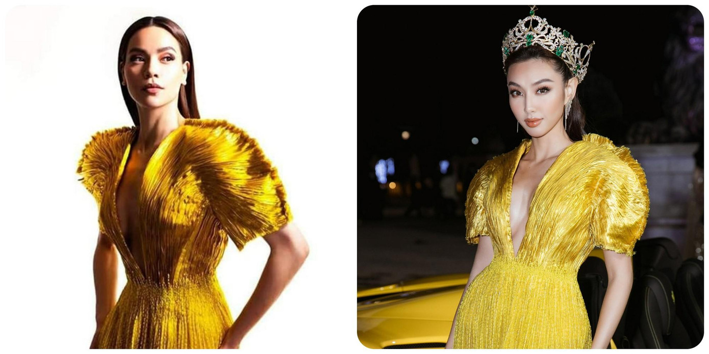 Ngoài ra, Hà Hồ cũng từng nhiều lần đọ sắc trong cùng một mẫu thiết kế với Hoa hậu chuyển giới quốc tế Hương Giang.