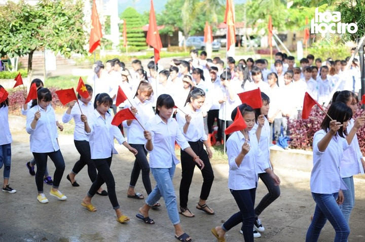 Các bạn học sinh háo hức trong buổi khai giảng quan trọng này.
