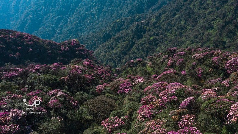 Tuy nhiên, để chinh phục được đỉnh núi này, bạn phải vượt suối, băng rừng, đi xuyên những hàng cây mọc không hàng lối, chìm trong khu rừng nguyên sinh rậm rạp, xanh mướt. Càng lên cao, những tán hoa đỗ quyên càng xuất hiện nhiều.