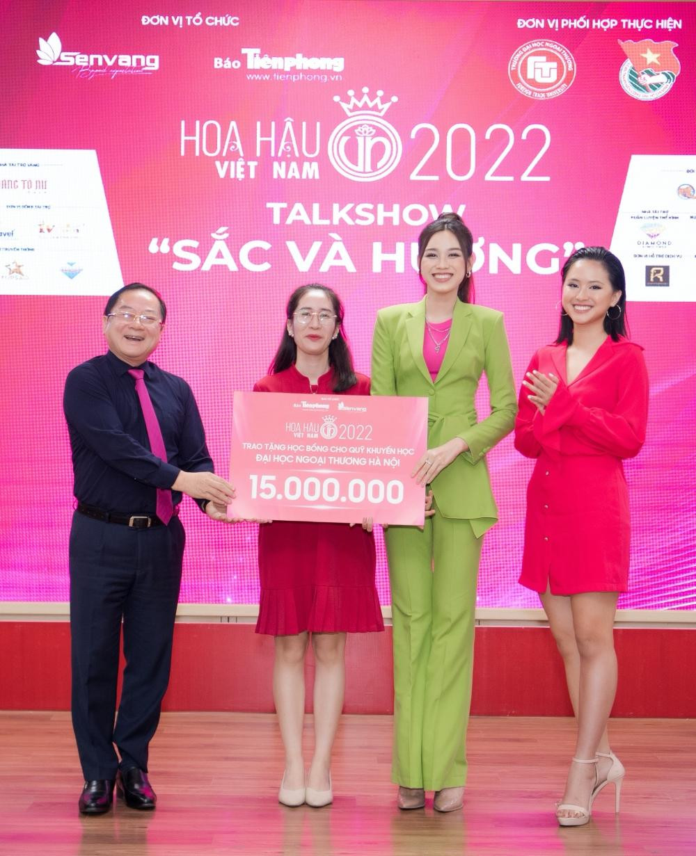 Ngoài việc truyền cảm hứng học tập, rèn luyện bản thân và hơn hết là dám thử sức mình ở một sân chơi sắc đẹp uy tín. BTC Hoa hậu Việt Nam 2022 còn trao tặng những suất học bổng giá trị đến sinh viên có hoàn cảnh khó khăn, hiếu học với mong muốn truyền động lực cho các bạn sinh viên phấn đấu trên con đường học tập.