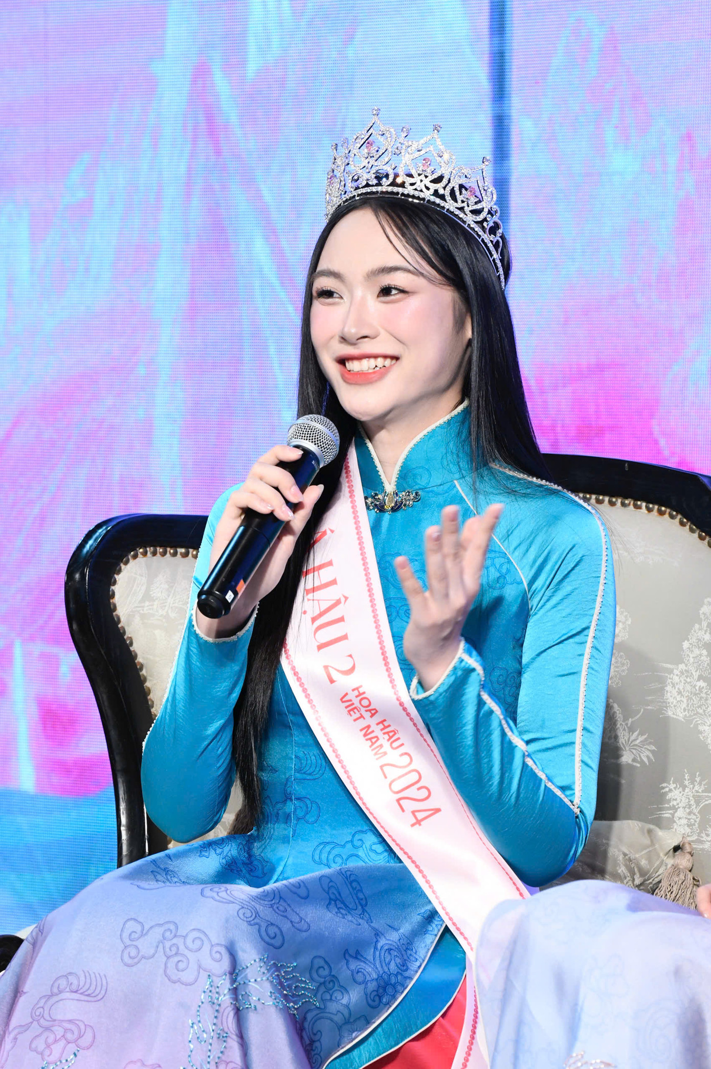 “Hôm họp báo chung kết Hoa hậu Việt Nam 2024, hình ảnh 6 chiếc xe in hình của tôi chạy trên đường TP Huế bất ngờ viral trên mạng xã hội là động lực giúp tôi hoàn thiện hơn. Trước đây, tôi là người rụt rè. Bước vào nhà chung Hoa hậu Việt Nam, tôi nhận ra mình có thể là người không toàn diện, nhưng biết lắng nghe, học hỏi sẽ giúp bản thân tốt hơn, trưởng thành hơn mỗi ngày. Tôi biết ơn vì dám chia sẻ những điều chưa hoàn thiện và nhận được sự góp ý từ mọi người”, Vân Nhi nói.