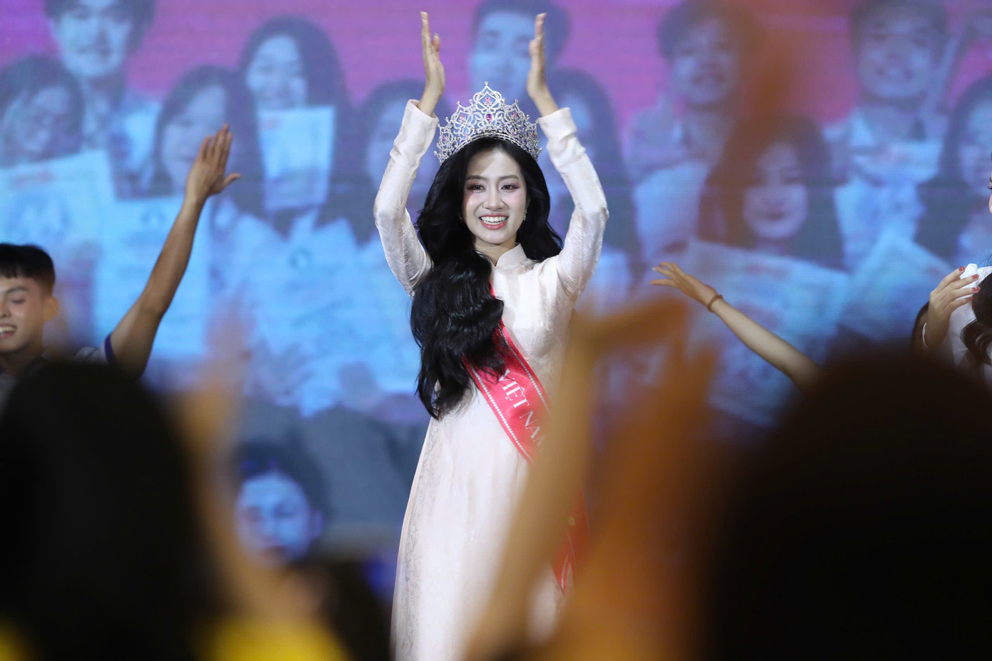 Buổi giao lưu là dịp để sinh viên chào đón người đẹp trở về. Với Hà Trúc Linh, đây chắc chắn là khoảnh khắc thiêng liêng, đánh dấu hành trình trưởng thành từ giảng đường đến sân khấu nhan sắc lớn nhất cả nước.