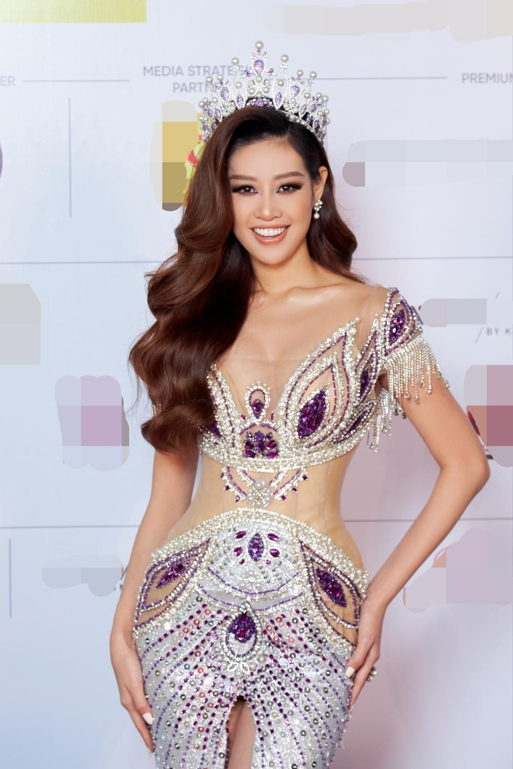 Đương kim Hoa hậu Hoàn vũ Việt Nam Nguyễn Trần Khánh Vân mặc thiết kế dạ hội lấy cảm hứng từ chính chiếc vương miện cô đang sở hữu.