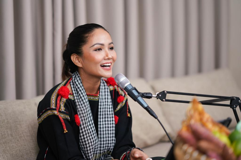 | Hoa hậu H'Hen Niê xuất hiện trên livestream với hình ảnh gần gũi thường thấy. |
