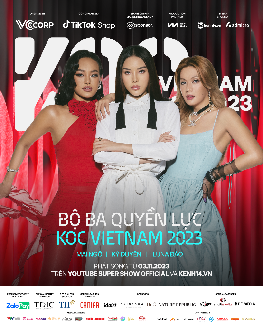 KOC Vietnam 2023 chính thức công bố "bộ sậu" đồng hành xuyên suốt với cuộc thi và Top 20 chương trình năm nay, bao gồm: Host Kỳ Duyên cùng 2 Master Mai Ngô - Luna Đào. Đây là lần đầu tiên cả 3 nghệ sĩ cùng xuất hiện trong một chương trình thực tế, hứa hẹn sẽ mang đến hàng loạt bất ngờ cho khán giả.