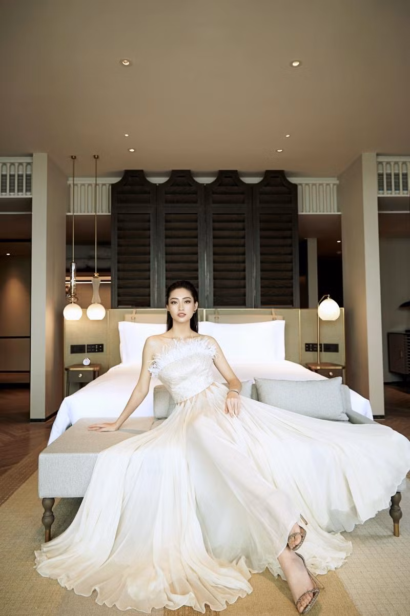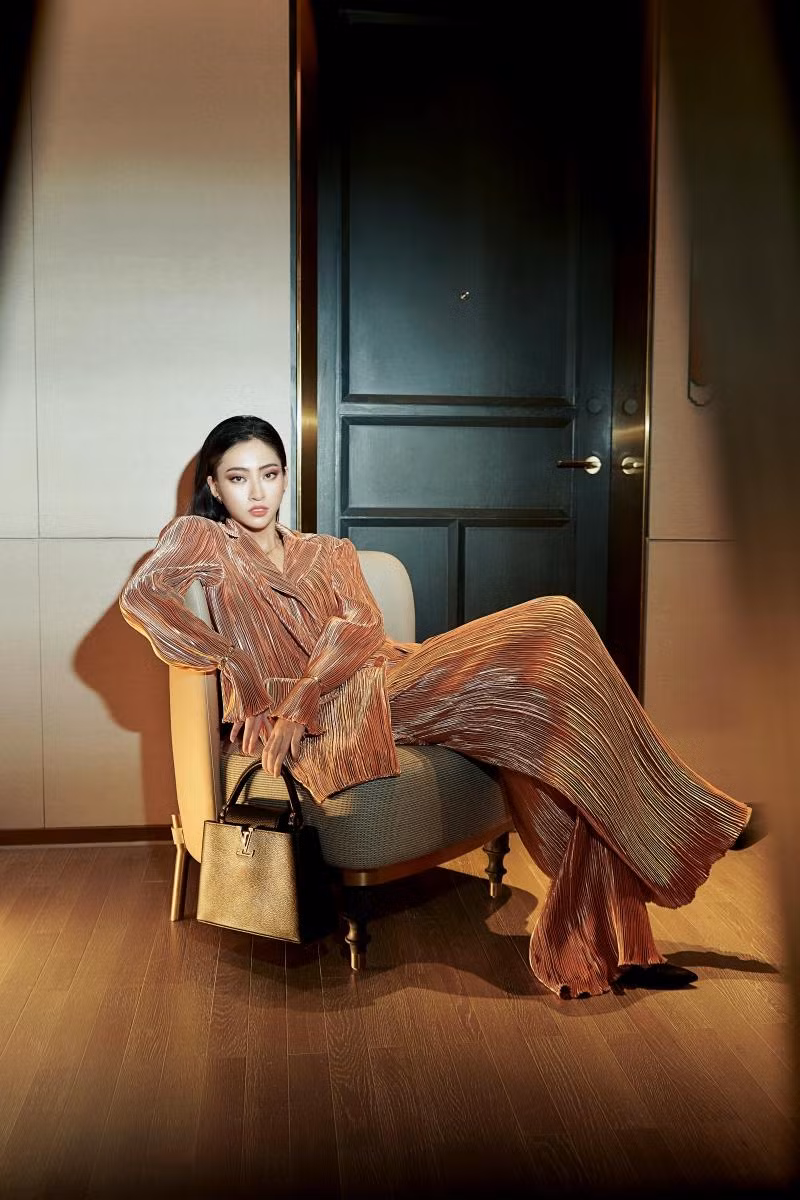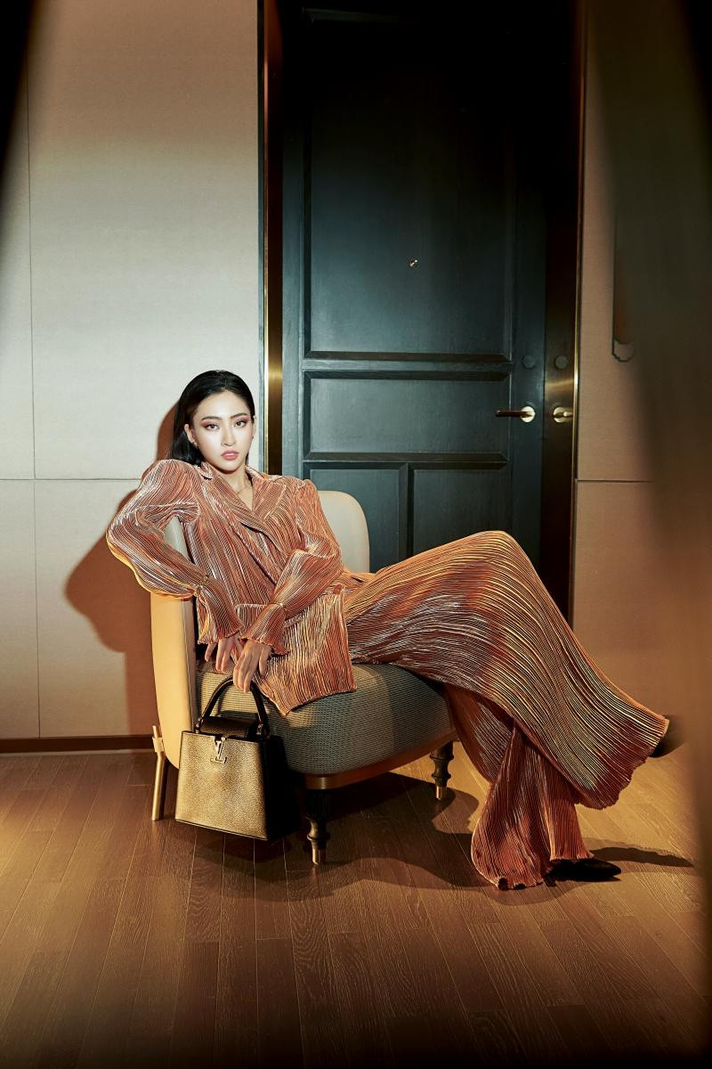 Nàng hậu mặc các thiết kế của NTK Công Trí, mang phụ kiện của các thương hiệu đình đám như Louis Vuitton, Hermès… khoe nhan sắc đỉnh cao. Nhờ có diện mạo đẹp hiếm có khó tìm, chỉ riêng gương mặt của Lương Thùy Linh thôi cũng đã là một điểm nhấn hút mắt trong từng khung hình.