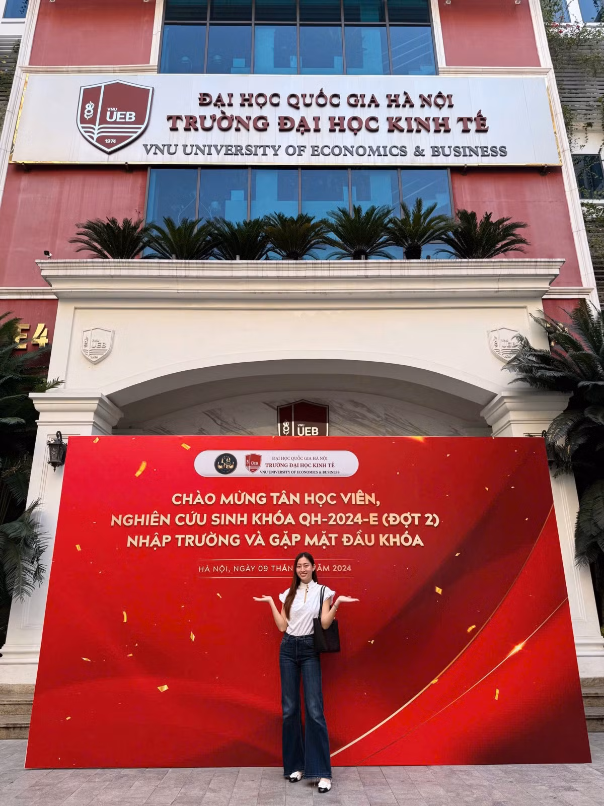 Sau khi tốt nghiệp loại Giỏi ngành Kinh tế Đối ngoại tại Đại học Ngoại thương Hà Nội, Hoa hậu Lương Thùy Linh tiếp tục hành trình chinh phục kiến thức nhằm phục vụ tốt hơn cho định hướng nghề nghiệp của mình.