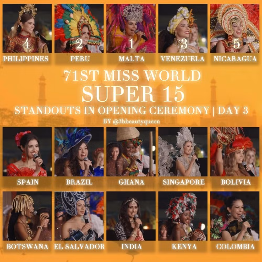 Chuyên trang @3bbeautyqueen chọn Top 15 thí sinh sau lễ khai mạc không có tên Hoa hậu Mai Phương.