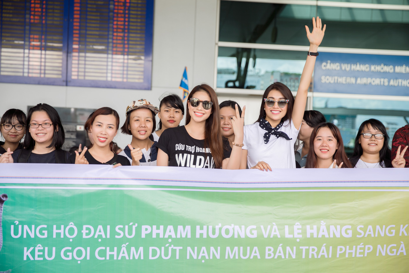 Sáng nay (21/5), Hoa hậu Hoàn vũ Việt Nam 2015 Phạm Hương và Á hậu Lệ Hằng đã có mặt tại sân bay Tân Sơn Nhất để chính thức lên đường sang Kenya theo lời mời của Trung tâm Hành động và Liên kết vì Môi trường và Phát triển (CHANGE) cùng Tổ chức bảo vệ động vật hoang dã toàn cầu WildAid với vai trò Đại sứ thiện chí nhằm kêu gọi chấm dứt nạn săn bắn và mua bán trái phép ngà voi, đồng thời bảo vệ loài voi khỏi nguy cơ tuyệt chủng.