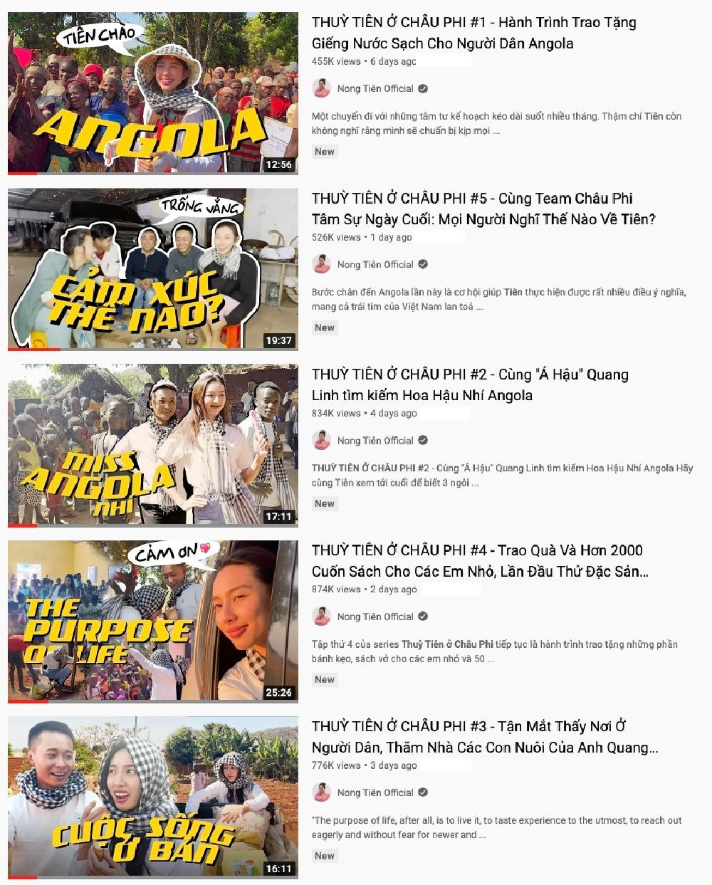 Mặc dù chân đi không ngừng trong suốt 1 tuần làm thiện nguyện, Thuỳ Tiên vẫn duy trì tần suất video đều đặn và liên tục để kịp truyền tải trọn vẹn hành trình tại đây. Cho tới thời điểm hiện tại, series tại châu Phi của Thuỳ Tiên đã chạm tới con số 4,5 triệu tổng lượt xem.