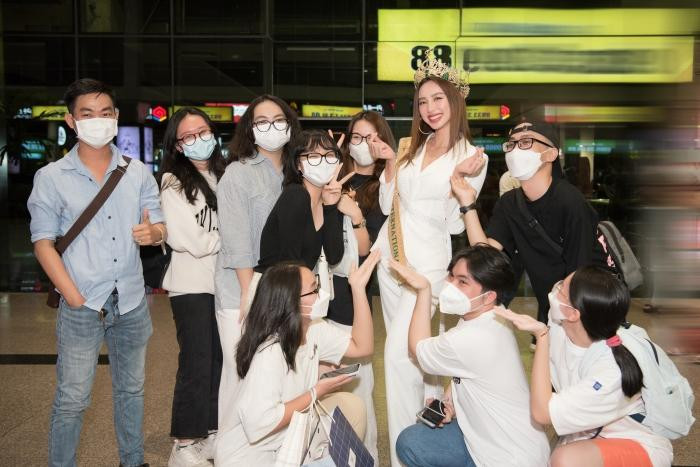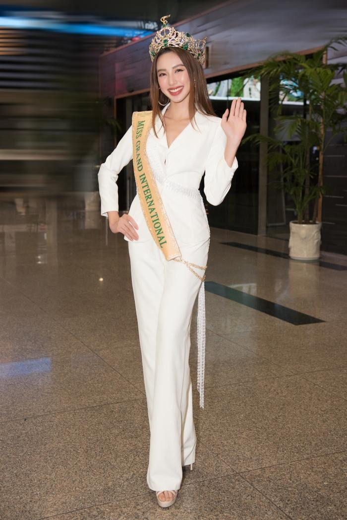 Trong ngày trở về, Hoa hậu Thùy Tiên diện bộ vest trắng cách điệu cùng layout rạng rỡ tươi tắn. Nàng hậu tiết lộ bản thân vô cùng cảm động trước sự chào đón nồng nhiệt của người hâm mộ tại quê nhà. Người đẹp vui mừng khi được gặp lại người thân cũng như người hâm mộ trong lần trở về nước đầu tiên sau đăng quang.
