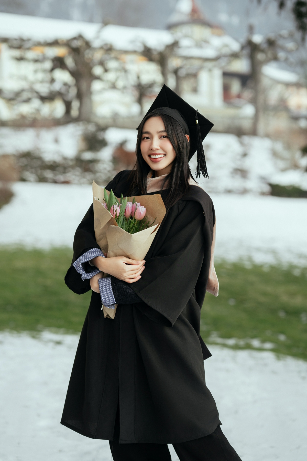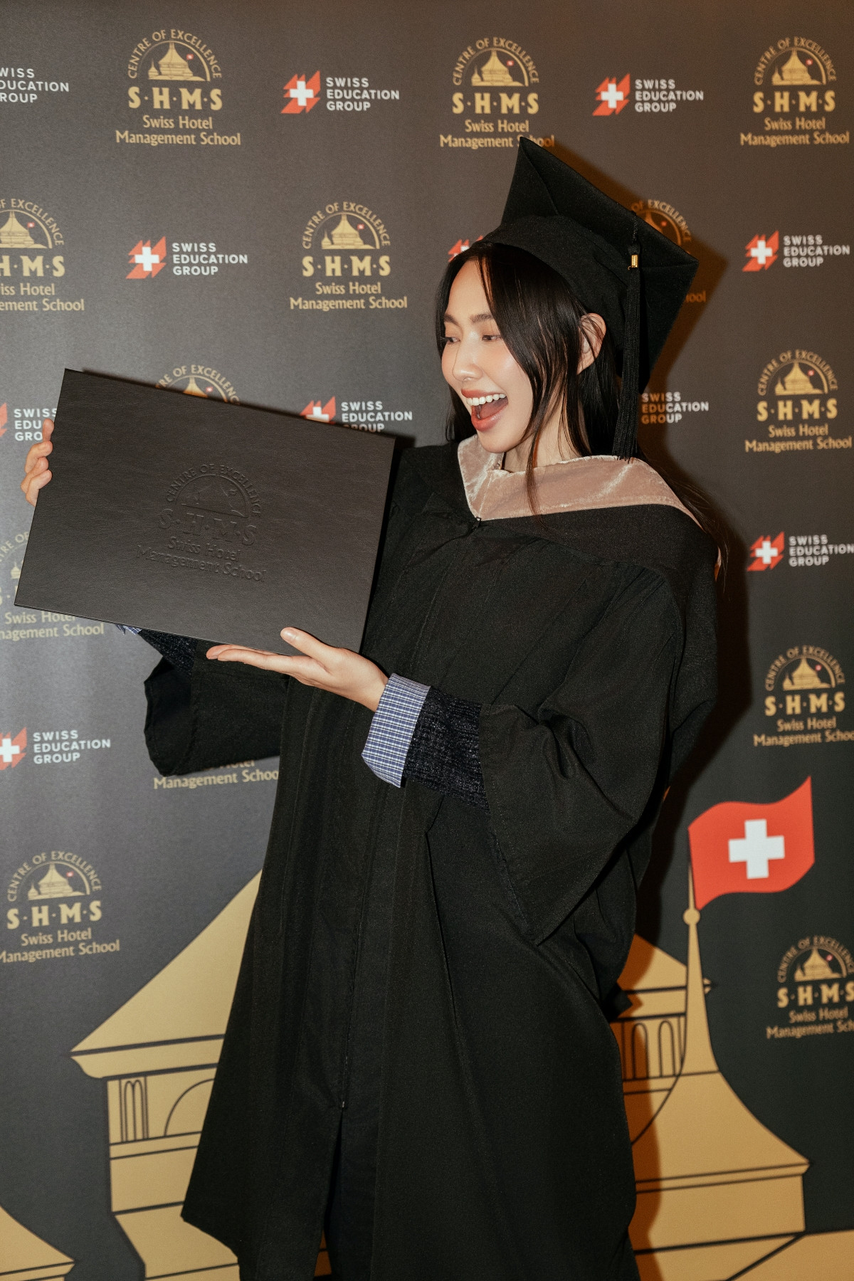 HHTO - Hoa hậu Thùy Tiên vừa chính thức hoàn thành chương trình Thạc sĩ ngành Quản trị Nhà hàng - Khách sạn tại Đại học Quản trị Du lịch - Khách sạn Thụy Sĩ (SHMS University) - một trong những ngôi trường hàng đầu thế giới về lĩnh vực này.