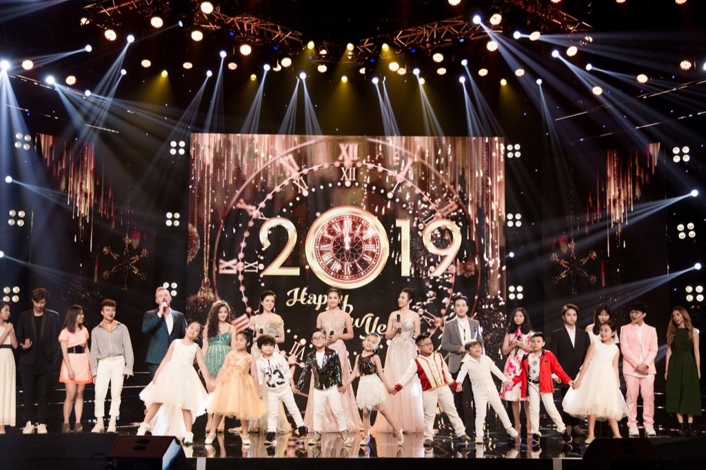Kết chương trình, 4 người đẹp cùng các ca sĩ và em nhỏ đã mang đến ca khúc quen thuộc Happy New Year để chào đón giây phút năm mới đang đến.