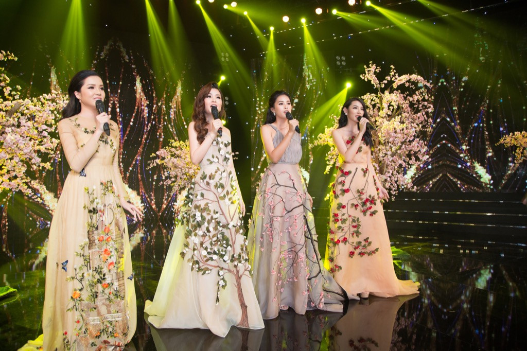 Trên sân khấu được trang trí tươi thắm bằng sắc hoa anh đào, 4 người đẹp đã cùng nhau biểu diễn ca khúc Nhan sắc Việt Nam được nhạc sĩ Dương Khắc Linh sáng tác dành tặng riêng cho cuộc thi Hoa hậu Việt Nam nhân dịp kỉ niệm 30 năm. Ca khúc này cũng từng được Hoa hậu Đỗ Mỹ Linh thể hiện cùng 44 thí sinh vòng Chung kết toàn quốc trong đêm Gala kỉ niệm 30 năm Hoa hậu Việt Nam.