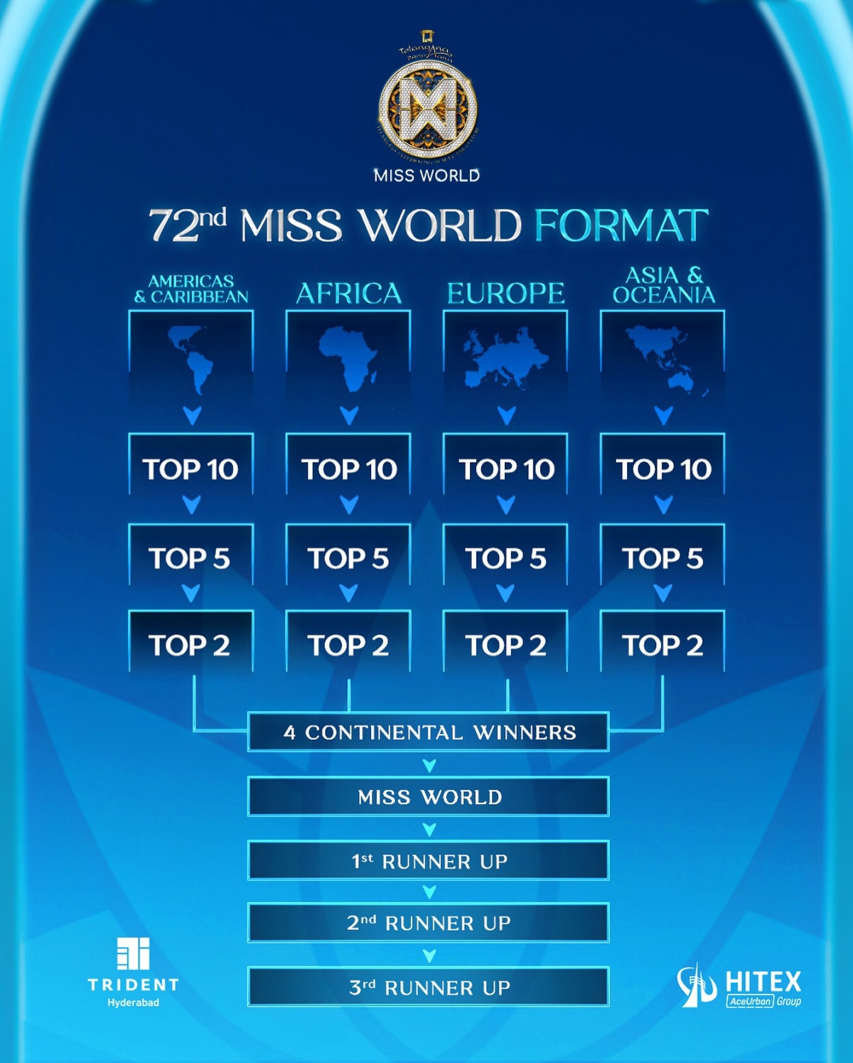 Tổ chức Miss World cũng đã thông báo chính thức về format của cuộc thi năm nay. Theo đó, Ban Giám khảo sẽ chọn mỗi cụm châu lục 10 người đẹp lọt vào Top 40, sau đó là Top 20, Top 8 và cuối cùng là Top 4 với 1 Hoa hậu và 3 Á hậu. Người đẹp Eliise Randmaa đến từ Estonia đã chiến thắng trong thử thách Thể thao, và cô chính thức là 1 trong 10 người đẹp khu vực châu Âu có mặt ở Top 40.