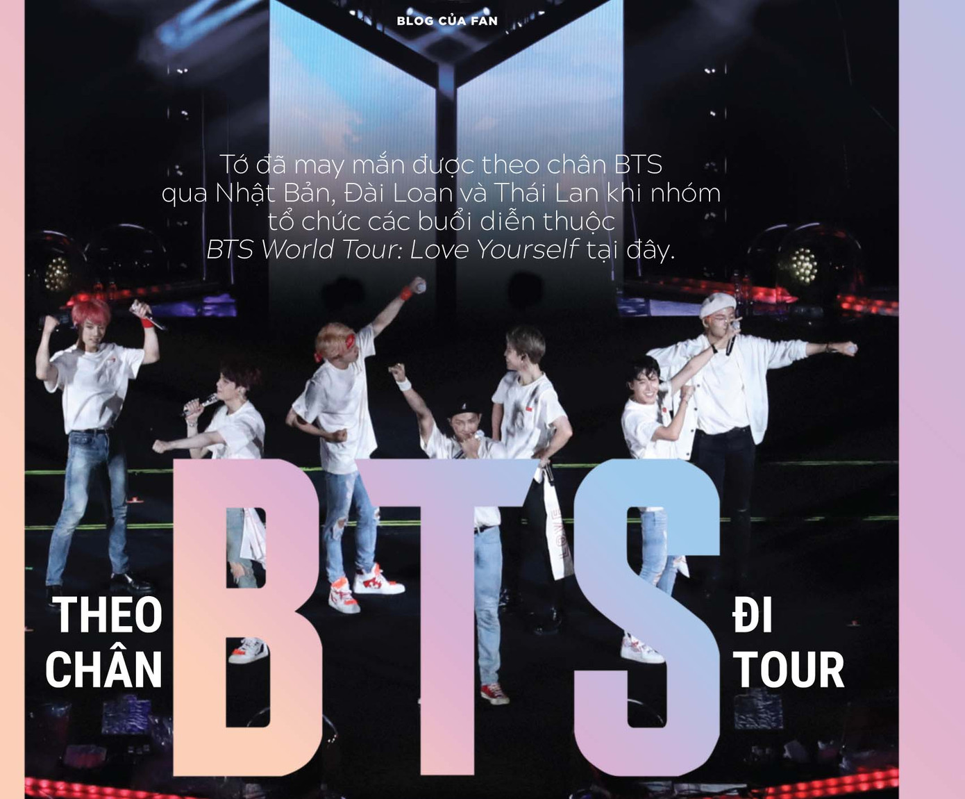Nếu yêu thích BTS, chắc hẳn bạn rất muốn được tham dự concert của họ một lần, tận mắt nhìn thấy các chàng trai đầy nhiệt huyết trên sân khấu lớn và hòa chung cảm xúc cùng hàng nghìn A.R.M.Y khác. Một thành viên của gia đình nhà HHT đã may mắn được theo chân BTS tại concert Đài Loan, Nhật Bản và Thái Lan đang sẵn sàng chia sẻ kinh nghiệm từ A đến Z của bạn ấy cho bạn đây!
