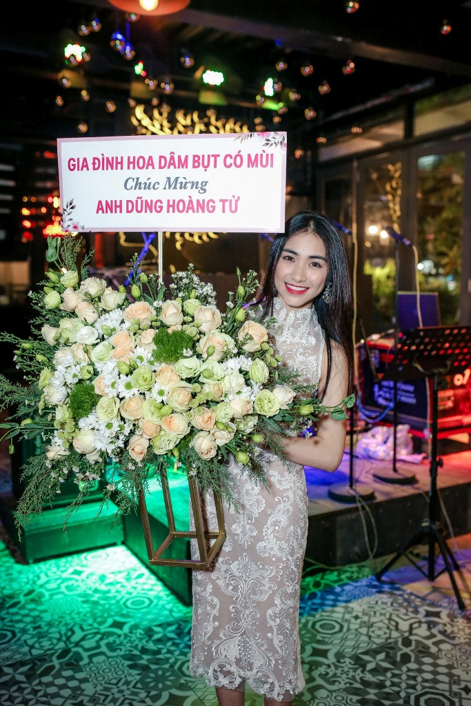 Hòa Minzy đi diễn nên đến muộn và không quên mang hoa tặng Mai Tiến Dũng.