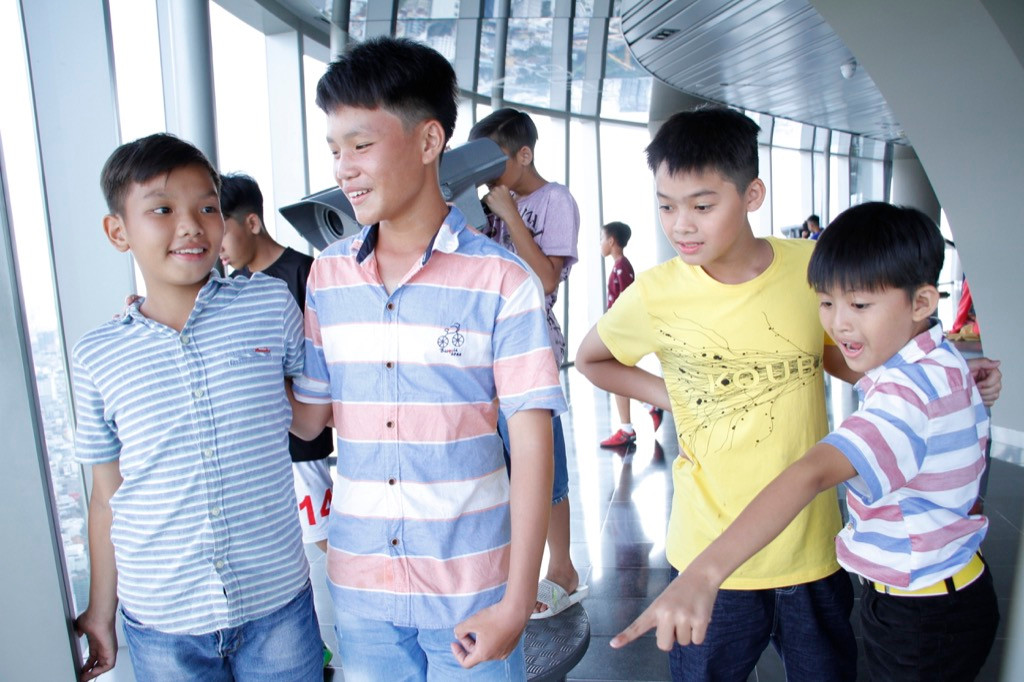 Hiếu Hiền bình tĩnh giải thích: “Thật ra đó là đặc điểm của riêng một mình anh mà không ai có thể bì được.” Sau đó, cả 2 bảo mẫu đáng yêu và 15 bạn nhỏ xuất sắc nhất Cầu thủ nhí 2018 đã có một cuộc tham quan khắp các địa điểm đặc sắc tại TP.HCM. Các bạn nhỏ đã có một buổi tiệc nho nhỏ tại phố đi bộ Nguyễn Huệ, được chiêm ngưỡng toàn thành phố và tha hồ chụp hình những cảnh vật đặc sắc tại tầng thứ 49 của tòa cao ốc Bitexco.