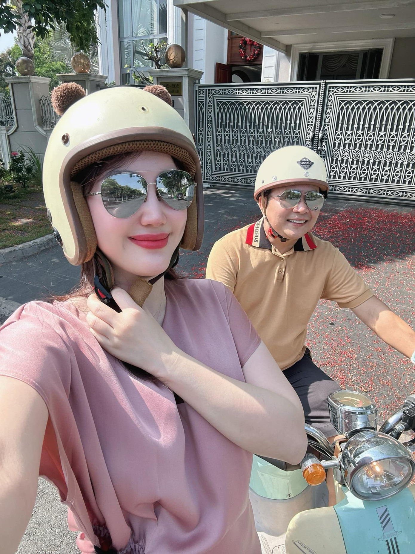 Bảo Thy vui vẻ nói về chồng: "Ngày trước khi mới về chung, anh luôn ước gì sáng nào vợ cũng dậy sớm để hai vợ chồng đi ăn sáng, uống cà phê cùng nhau chứ chồng đi một mình hoài buồn. Mình vẫn cứ hihi haha cười trừ và vẫn... ngủ. Nhưng mọi thứ cứ tự động theo mong muốn của sau khi em Vic đi học. Vì cứ 7 giờ là mẹ gọi con dậy, vệ sinh cá nhân rồi ba mẹ đưa con đi học, sau đó rảnh thì đi nhậu... à nhầm đi ăn sáng uống cà phê với nhau chứ còn chờ gì nữa".