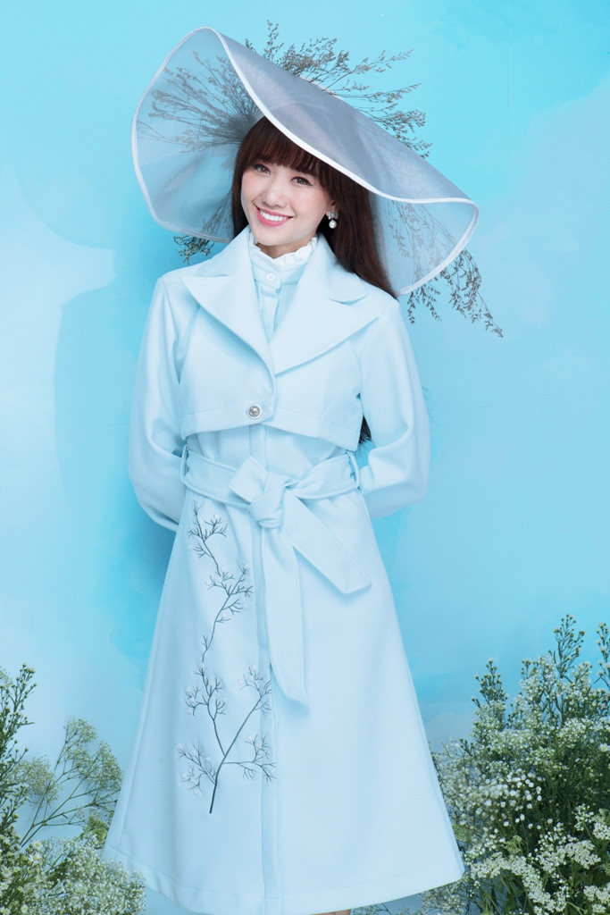 Với sự hòa quyện hai tông màu trắng - xanh pastel, Hari Won vẫn nổi bật như một quý cô thanh lịch và quyến rũ. Các thiết kế là sự kết hợp giữa chất liệu cứng và mềm cùng những kỹ thuật thêu truyền thống đan xen với họa tiết in hiện đại. Tổng thể tạo nên sự đối lập hoàn hảo trên từng set đồ của Hari Won.