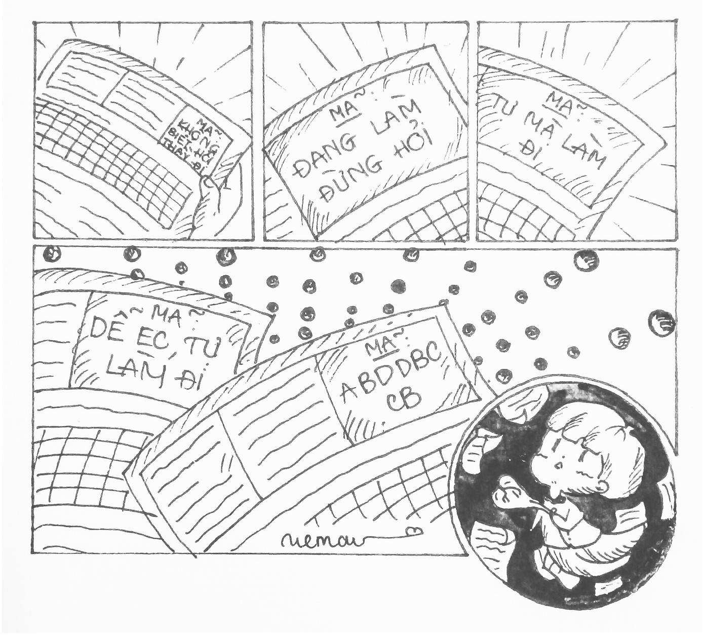 4. Mỗi lần kiểm tra, mã đề của tụi tui là: “Không biết, hỏi thầy đi”, “Đang làm đừng hỏi”, “Tự mà làm đi”, “Dễ ẹc, tự làm đi” và một cái đề “ABDDBCCB” (thằng nào nghe theo chép đáp án là chết cha luôn).