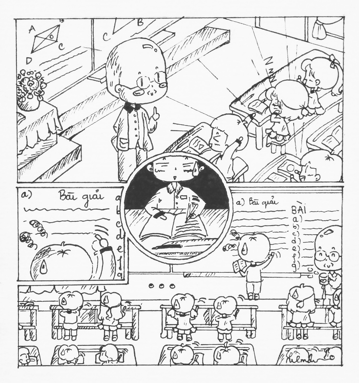 1. Thầy nói làm thêm một bài nữa thôi rồi thầy cho nghỉ. Sau đó thầy cho tụi tui một bài toán gồm 10 câu hỏi lẻ. Mỗi câu hai mươi phút được giải bằng đầu của thằng giỏi nhất + bàn tay chép lia lịa của những thằng không phải giỏi nhất.