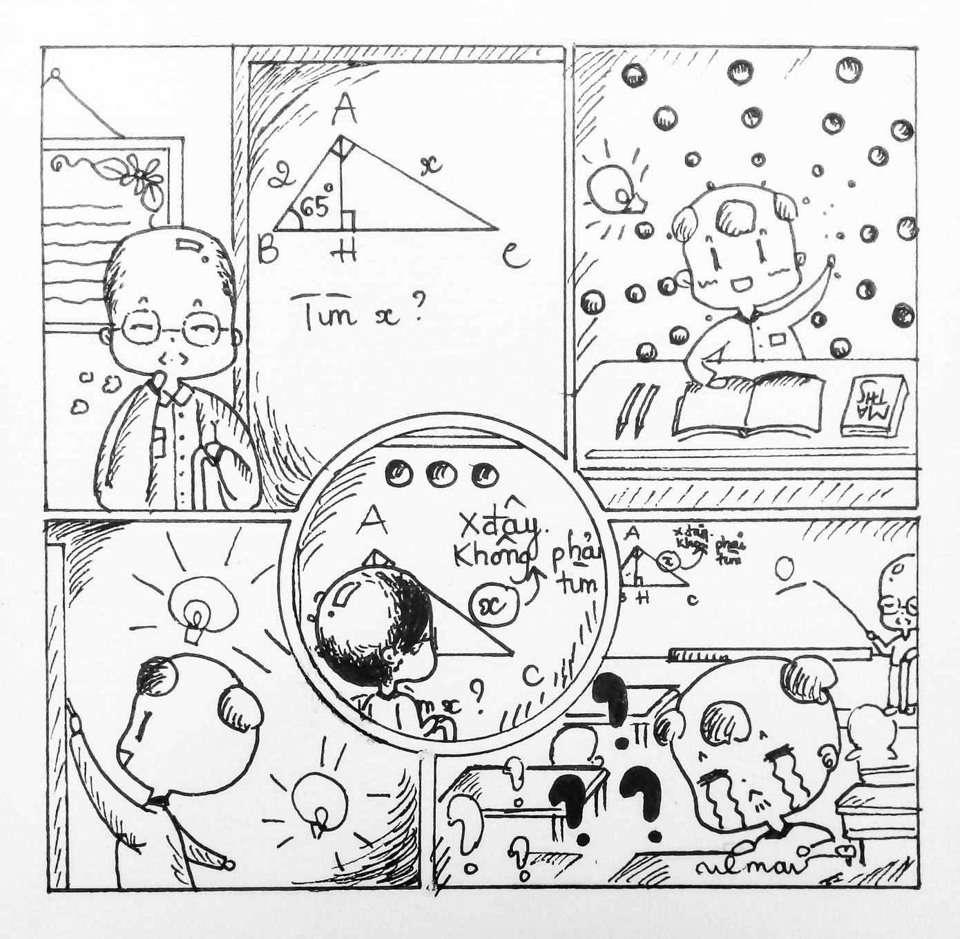 7. Thầy Toán kêu tìm X, tui lên bảng khoanh cho thầy chữ X, kêu thầy khỏi tìm nữa. Thầy cho tui 0 điểm.