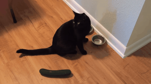 Nếu bạn thay dưa chuột bằng quả chuối, hay một con thú bông, thì con mèo vẫn nhảy dựng lên và chạy biến thôi. Bởi bản năng báo cho nó thấy cần phải cảnh giác, cứ chạy đi xa là hơn.