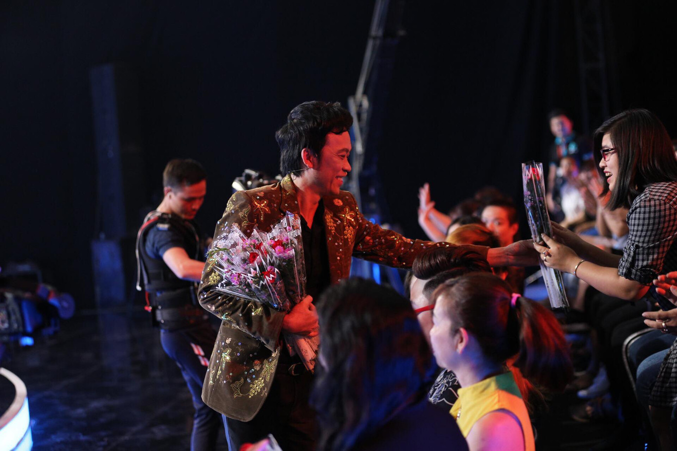 Hoài Linh, Trấn Thành tặng hoa cho khán giả nữ trong trường quay.