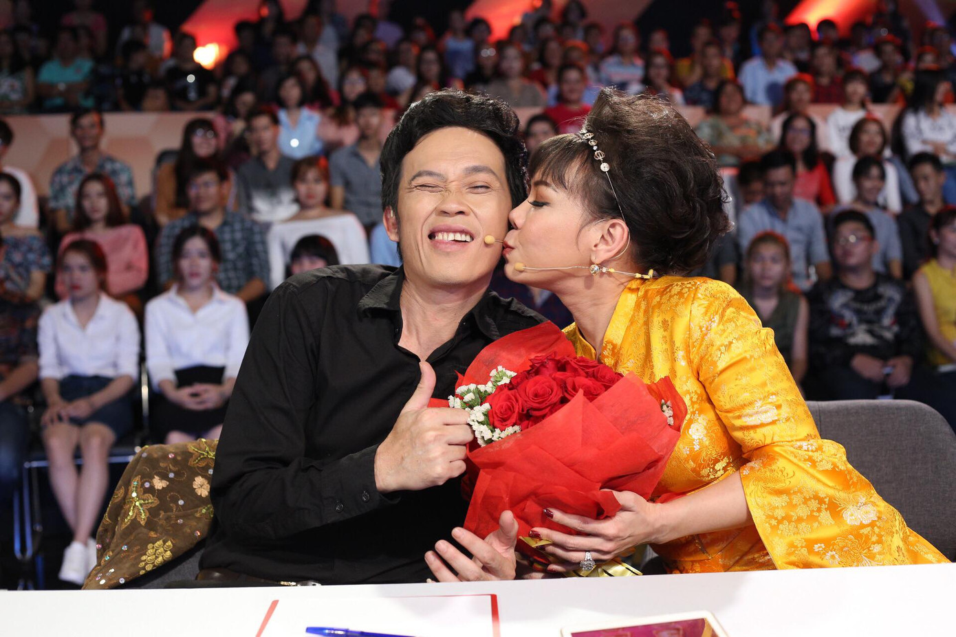 Hoài Linh, Trấn Thành tặng hoa cho Việt Hương, Lê Giang, Hari Won và khán giả trong trường quay.