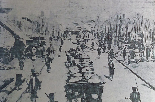Hình ảnh phố Hàng Tre ngày xưa, tấp nập người mua kẻ bán. Hàng Tre xưa kia thuộc đất thôn Trừng Thanh, tổng Tả Túc, huyện Thọ Xương cũ.