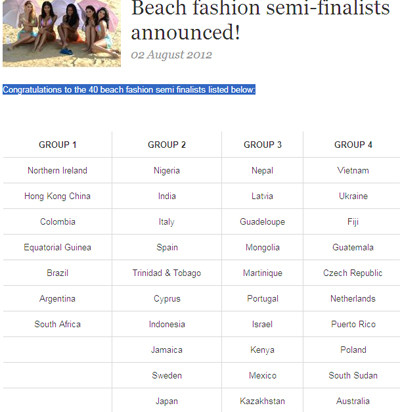 Với những gì đã thể hiện, Hoàng My được chọn vào top 40 người đẹp Beach Beauty. Miss Vietnam đang là người dẫn đầu nhóm thứ tư theo công bố trên trang web Miss World.