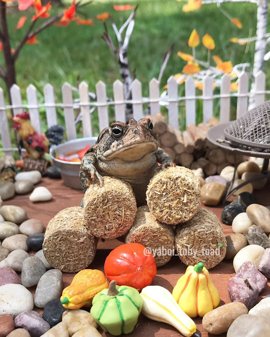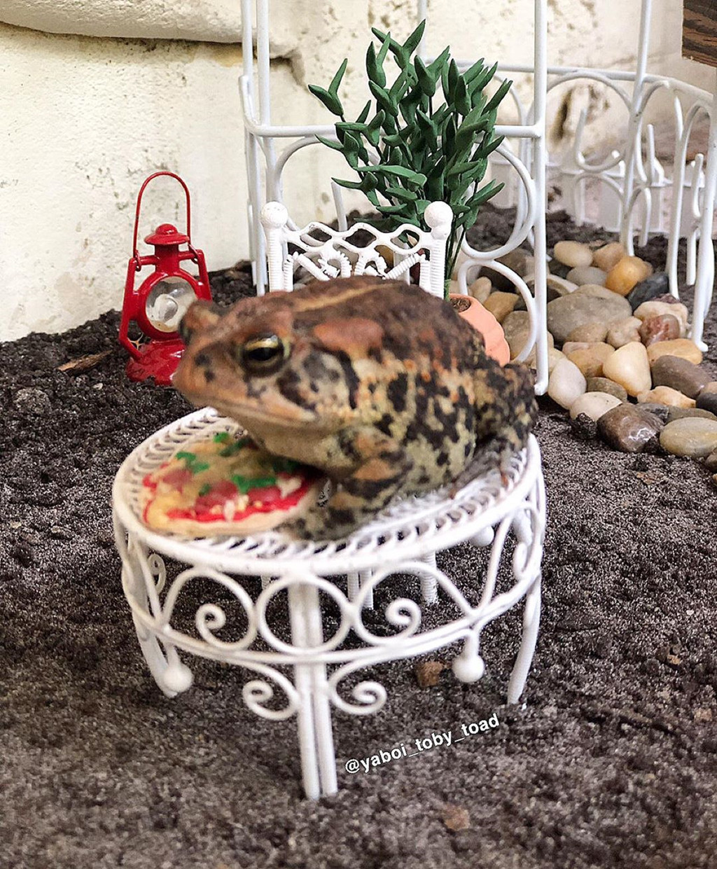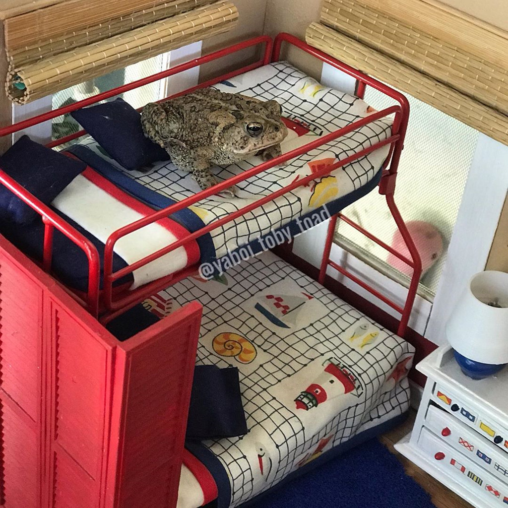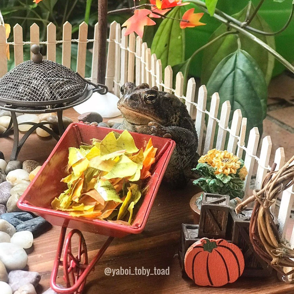 "Tôi thích quanh quẩn ngoài vườn và rồi phát hiện một con cóc với màu sắc nổi bật. Tôi nghĩ sẽ rất thú vị nếu đặt Toby vào căn nhà búp bê. Ban đầu, tôi chỉ muốn pha trò cho đám bạn. Dần dần, con cóc nhận được chú ý và tôi bắt đầu đăng nhiều ảnh về Toby hơn", cô chia sẻ với Insider.