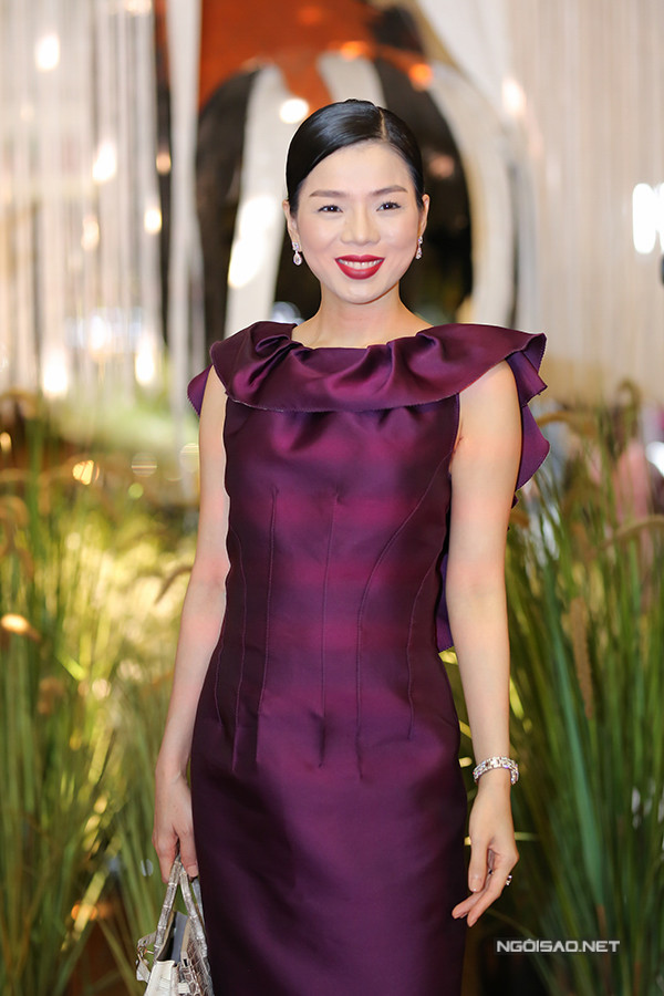 Ca sĩ Lệ Quyên được tháp tùng bởi ông xã đã xuất hiện khá sớm. “Nữ hoàng phòng trà” gây ấn tượng mạnh với chiếc đầm màu đỏ quyến rũ tôn đường cong và đặc biệt là chiếc túi Hermes Birkin da cá sấu - một đề tài đã gây tranh cãi mới đây trong showbiz.