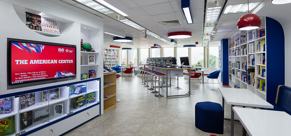 Thay vì phải chi số tiền khá lớn để mua sách tiếng Anh, bạn có thể đến trung tâm Hoa Kỳ (The American Center) - đơn vị trực thuộc Tổng Lãnh sự quán Hoa Kỳ tại TP.HCM - là có thể thỏa sức sức “bơi” trong kho kiến thức phong phú qua hàng ngàn đầu sách chất lượng rồi. Không gian học tập cũng được thiết kế linh hoạt để đáp ứng nhu cầu học tập cá nhân lẫn học nhóm, với những trang thiết bị hiện đại như: máy tính kết nối wifi, máy chiếu phim… Bật mí, trung tâm Hoa Kỳ cũng là địa điểm sinh hoạt thường xuyên của các CLB tiếng Anh do các anh chị sinh viên tổ chức đó! Nhớ đăng kí tham gia để rèn luyện kĩ năng giao tiếp tốt hơn nha!