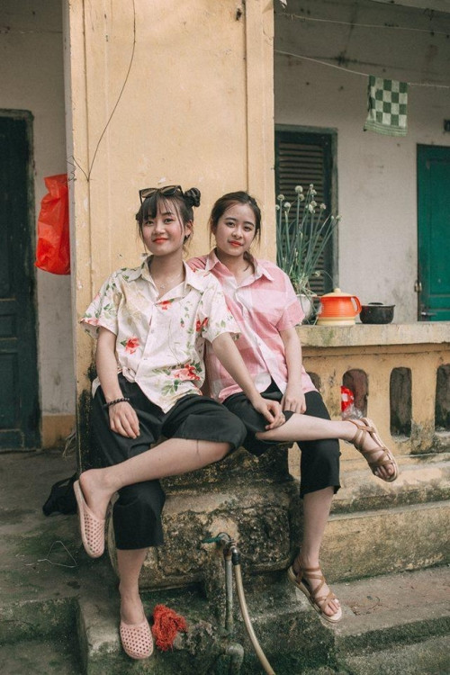 Những cô gái của lớp diện sơ mi hoa, quần thụng xắn gối “tông xuyệt tông” tạo nên một tổng thể cá tính và đậm chất xưa.