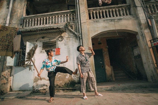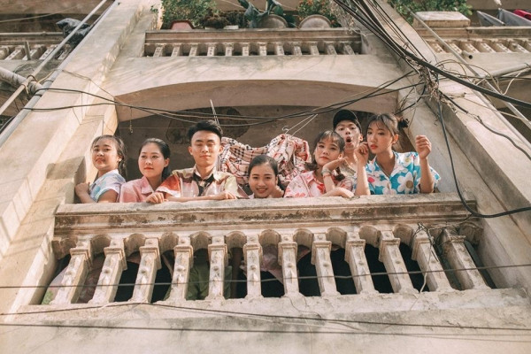 Về địa điểm, cũng chẳng cần đi đâu xa, cả lớp chỉ chọn toàn những góc quen thuộc của Phú Thọ: khu tập thể nhà máy supe Lâm Thao và Chợ 5 tầng Việt Trì. Đây là góc khu tập thể rêu phong, kia là cánh cửa sắt hoen rỉ… tất cả những background ấy khi lên hình lại tạo nên hiệu ứng bất ngờ. Cộng thêm hậu kì một chút để có được hiệu ứng như ý là đã có ngay một bức ảnh như thời bao cấp thật sự.