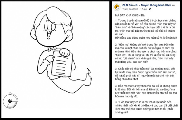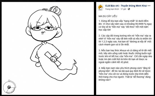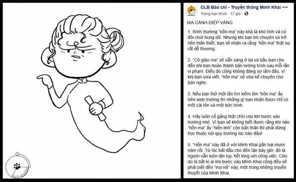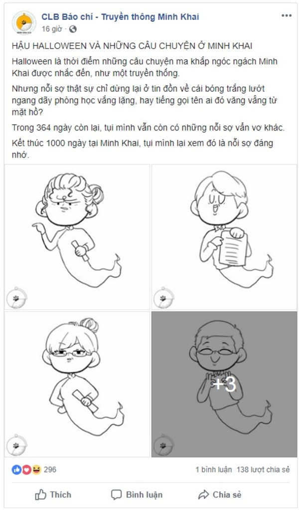 Bộ tranh ký họa được đặt tên là "Hậu Halloween và những câu chuyện ở trường Minh Khai", tập hợp nhiều bức hình thầy cô được các học sinh THPT Nguyễn Thị Minh Khai ký họa. Điều gây chú ý là các bạn đã vẽ thầy cô thành những hồn ma đáng yêu, như lời mô tả "Khi thầy cô hành động thì còn đáng sợ hơn cả Halloween".