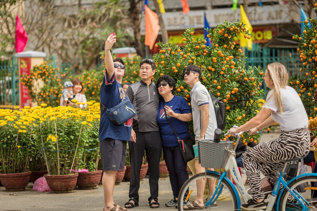 Du khách nao nức với không khí sắp Tết ở đường hoa Xuân phố Hội.