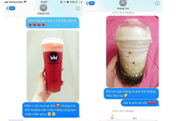 Thế nhưng, trong mắt cô nàng, anh trai là người tuyệt vời vì rất chiều theo sở thích "nghiện trà sữa" của em gái. Q.T chụp lại màn hình những cuộc hội thoại, cho thấy chỉ cần cô em gái nhõng nhẽo đòi trà sữa là được ông anh chiều ngay. "Mình biết trong sâu thẳm trái tim anh vẫn luôn yêu thương con em gái dễ thương này. Chắc mình phải cho người anh tuyệt vời của mình cái tên anh trai trà sữa quốc dân mất thôi", Q.T viết.
