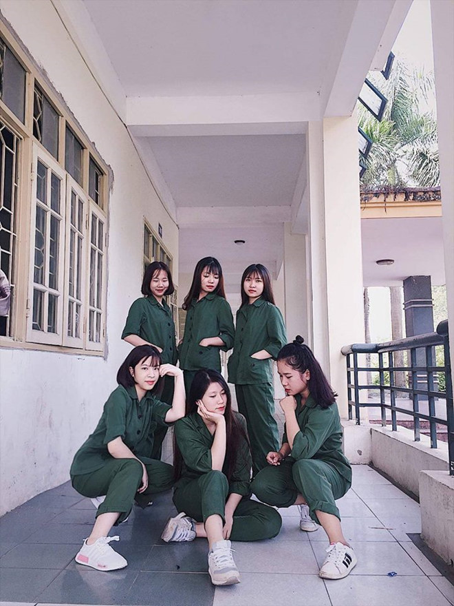 Được biết, chủ nhân bài đăng là Đặng Ngọc Hà, sinh viên năm 2, ĐH Sư phạm Thái Nguyên. Để có được những tấm ảnh mới lạ lúc đi học quốc phòng, cô cùng 5 người bạn đã biến ký túc xá thành địa điểm tạo dáng lý tưởng.