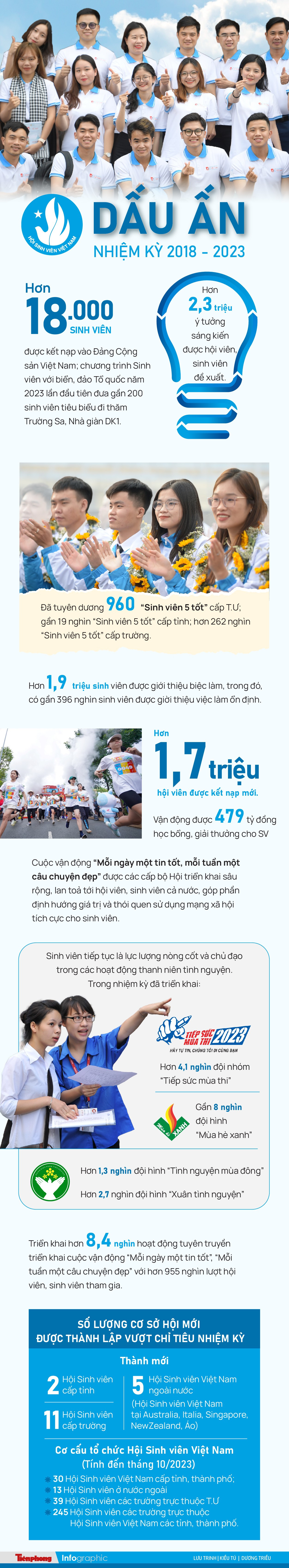 Nhiệm kỳ 2018 - 2023, Hội Sinh viên Việt Nam đã ra sức phấn đấu, vượt qua khó khăn, đạt được nhiều thành tựu quan trọng, toàn diện, tạo dấu ấn nổi bật trong công tác Hội và phong trào sinh viên, góp phần khẳng định vai trò, sứ mệnh tiên phong, kế thừa, phát triển sự nghiệp cách mạng của Đảng và dân tộc trong thời kỳ mới.