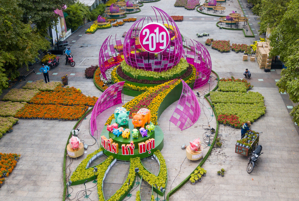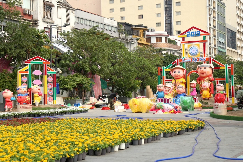 Chiều 2/2/2019 (Tức 28 Tết), dọc theo tuyến phố đi bộ Nguyễn Huệ, các tiểu cảnh đã được hoàn thành và hôm nay chính thức khai trương đến 22h ngày 8/2/2019 (Mùng 4 Tết). Thời gian thu dọn dự kiến từ: từ 22h00 ngày 8/2/2019 (Mùng 4 Tết) đến 6h ngày 9/2/2019 (Mùng 5 Tết).