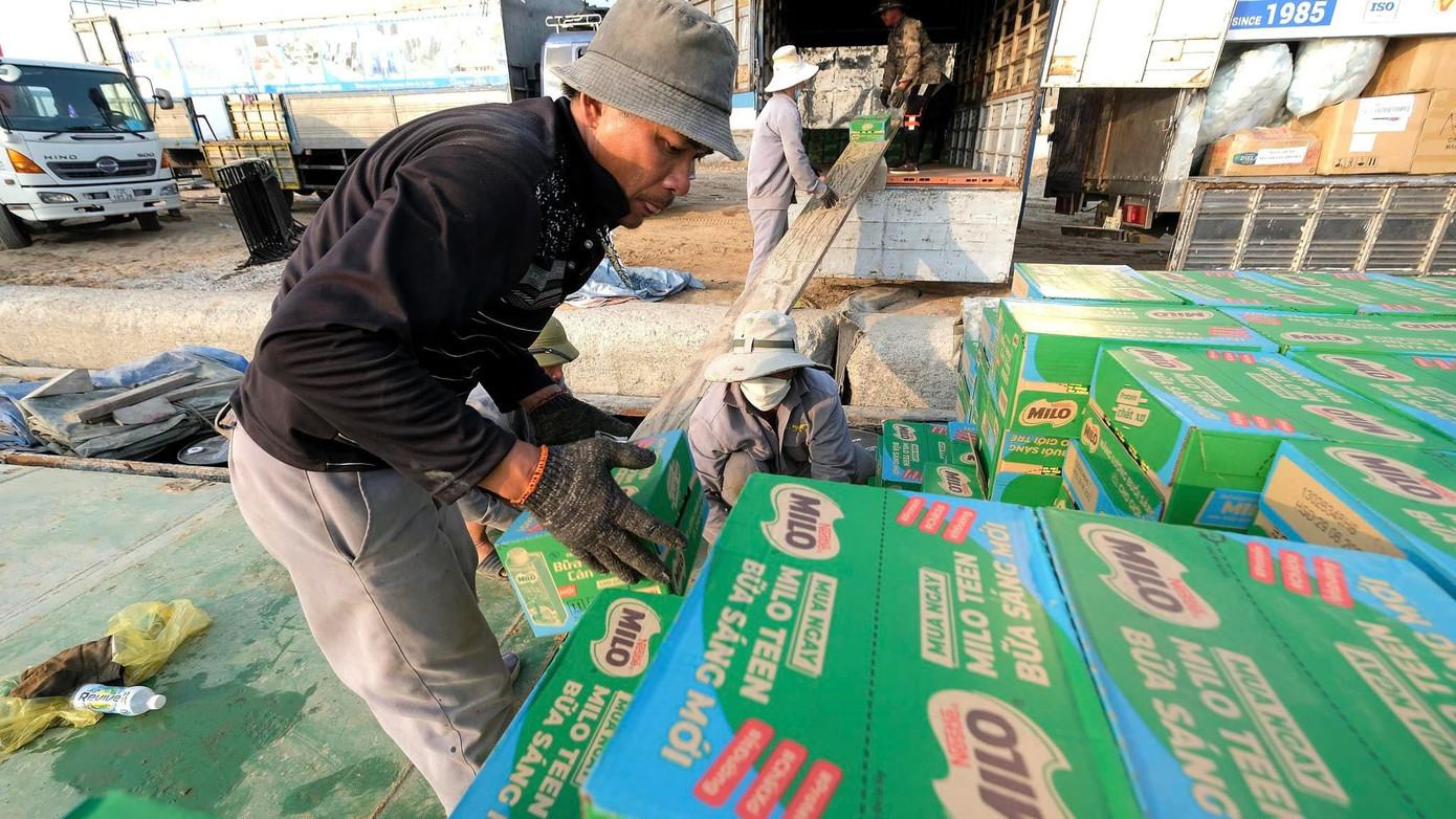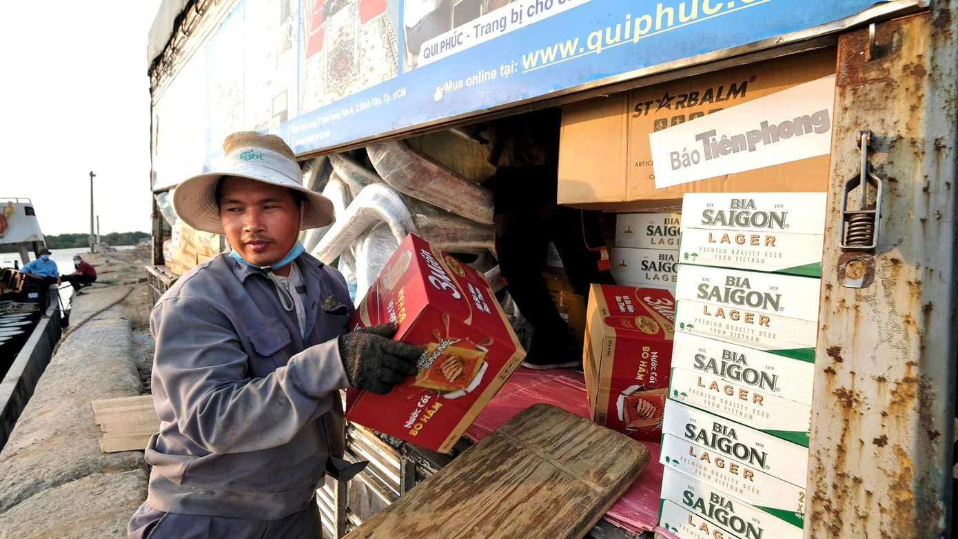 Hơn 100 tấn hàng hoá đang nối đuôi nhau cập cảng. Và để nhận số hàng hoá này, cần khoảng 10 ngày với số lượng hàng gấp 5 lần giải Tiền Phong Marathon 2020 tại Lý Sơn.