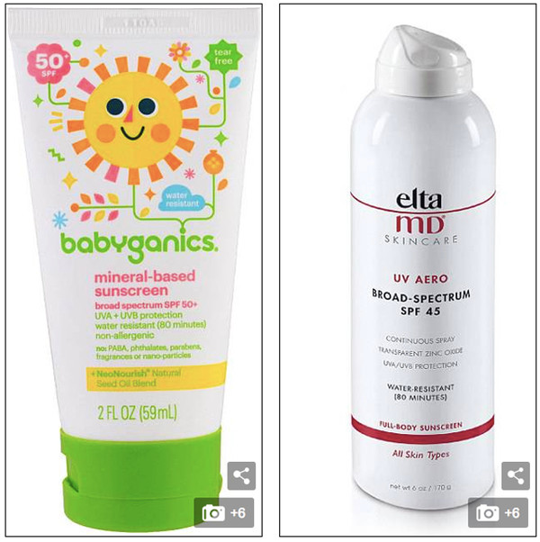 Kem chống nắng khoáng chất Babyganics (trái) và Elta MD (phải) không cung cấp được một nửa số SPF ghi trên bao bì.