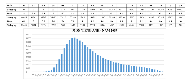 Phổ điểm môn thi tiếng Anh THPT quốc gia 2019 do Bộ GD&ĐT thống kê như sau:
