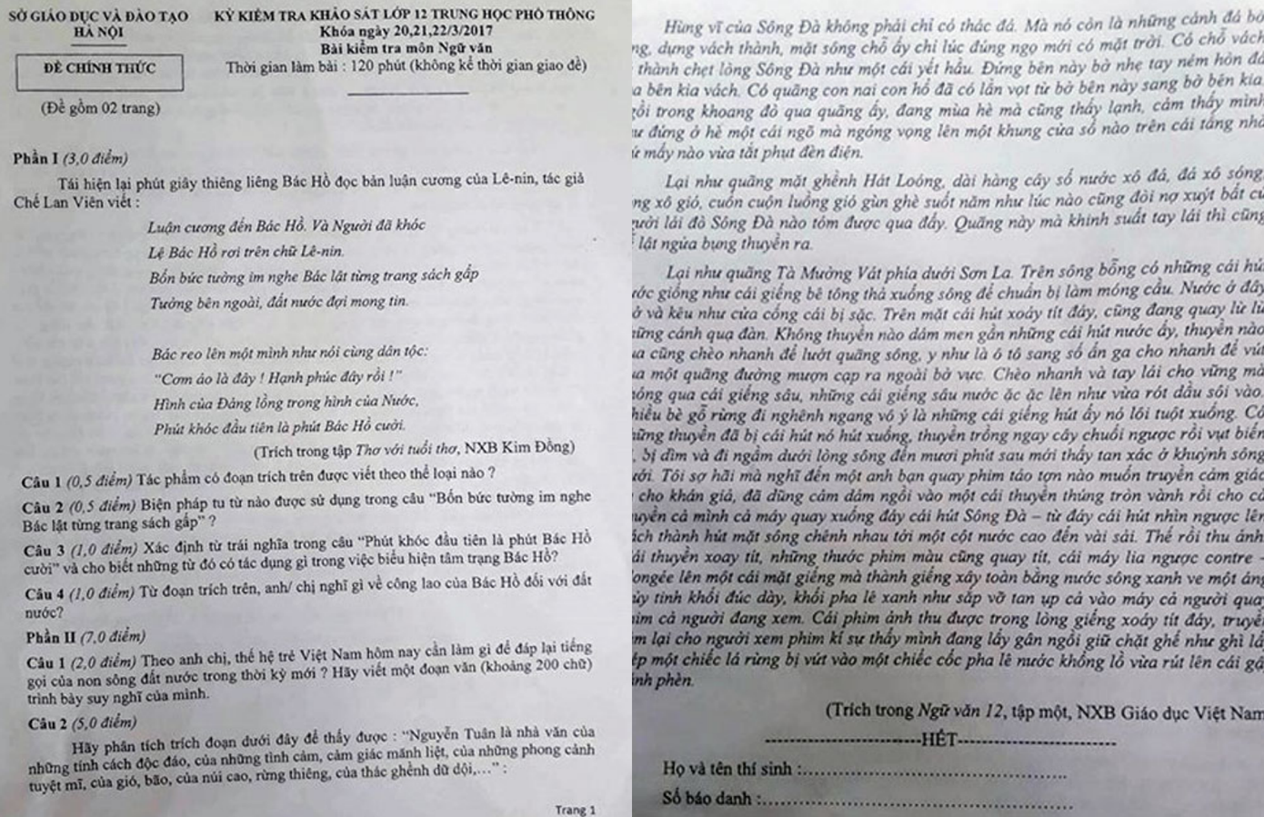 Đề thi môn Ngữ Văn sáng ngày 20/3.