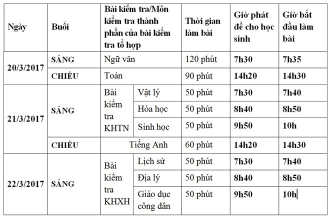 Trong kỳ thi khảo sát này, mỗi bạn học sinh sẽ làm 4 bài kiểm tra: 3 bài bắt buộc gồm Toán, Ngữ văn, Tiếng Anh và một bài kiểm tra tự chọn Khoa học tự nhiên (tổ hợp các môn Vật lý, Hóa học, Sinh học) hoặc Khoa học xã hội (Lịch sử, Địa lý, Giáo dục công dân).
