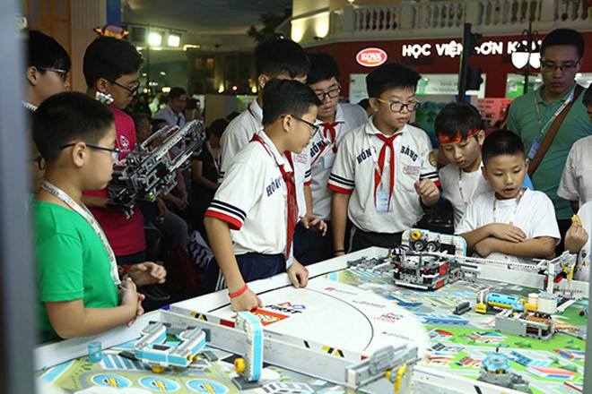 Tham gia với cuộc thi, các em học sinh sẽ có một sân chơi chuyên nghiệp để thể hiện niềm đam mê thiết kế, lắp ráp và lập trình robot.